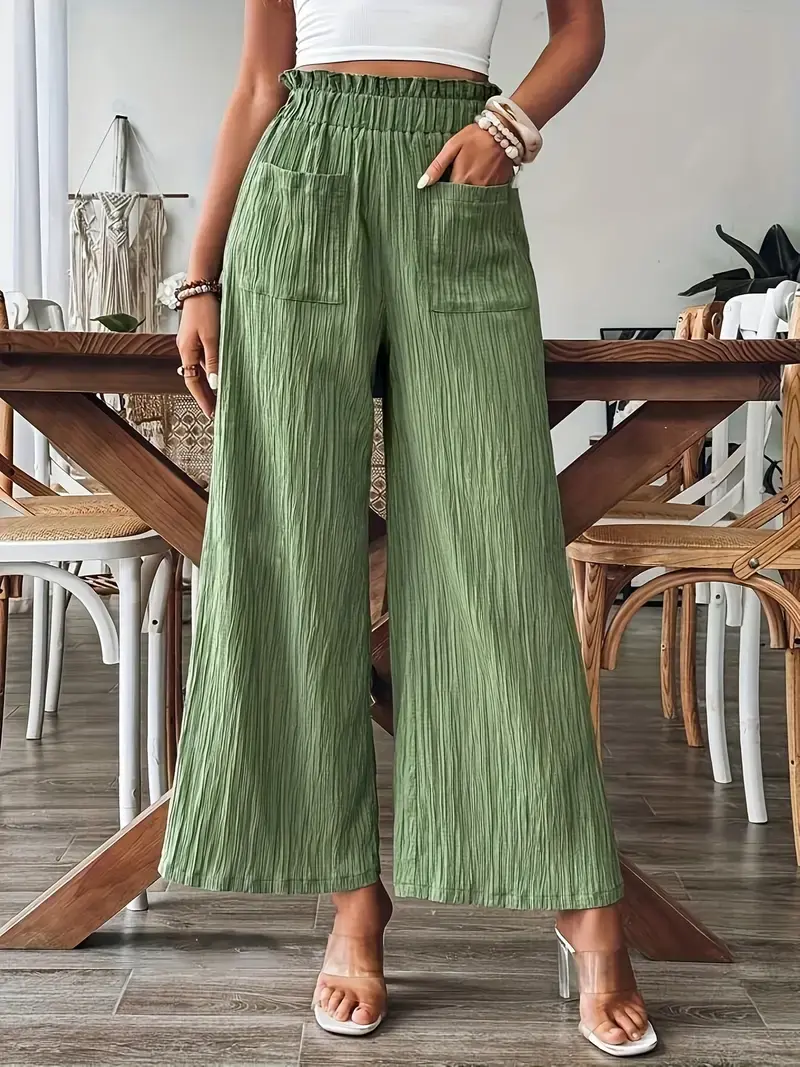 Introducing our stylish Women's Pants3, featuring dual pockets and wide leg design for a versatile and trendy look. These Casual Paper Bag Waist Textured Loose Pants are the perfect addition to any wardrobe with their comfortable and flattering fit. The paper bag waist adds a touch of sophistication while the loose, flowing fabric provides all-day comfort and freedom of movement. Whether you're at work or out on the town, these pants are a must-have for the modern woman. Available in a variety of colors, these pants are the perfect choice for effortless and chic style.